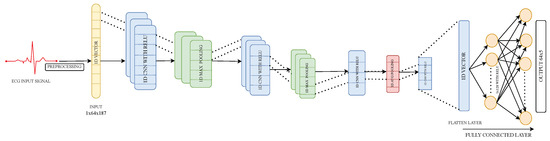- Hua, X.; Han, J.; Zhao, C.; Tang, H.; He, Z.; Chen, Q.; Tang, S.; Tang, J.; Zhou, W. A novel method for ECG signal classification via one-dimensional convolutional neural network. Multimed. Syst. 2022, 28, 1387–1399. [Google Scholar] [CrossRef]