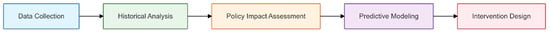The proposed framework leverages data-driven approaches to address complex policy analysis and intervention challenges. The methodology is structured around five interconnected stages: data collection, historical analysis, policy impact assessment, predictive modeling, and intervention design. Each stage is designed to optimize the integration of visualization, statistics, and AI capabilities, ensuring efficiency and maintaining social order through adaptive communication and decision-making processes.
