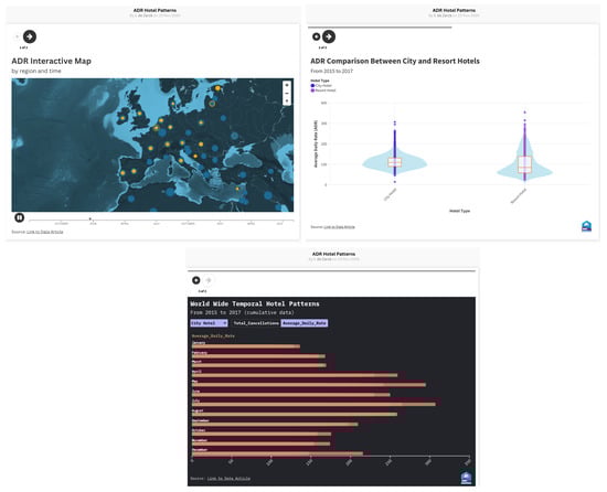 All data underlying the results presented in this study are publicly available. The datasets used in this study can be accessed from the following repositories: the hospitality sector data are available from the Data in Brief repository (https://doi.org/10.1016/j.dib.2018.11.126); the Global Food Security Index data are available from The Economist Impact (https://impact.economist.com/sustainability/project/food-security-index) and from Kaggle (https://www.kaggle.com/datasets/rahuljangam/global-food-security-index); and educational statistics are available from the UNESCO Institute for Statistics (https://uis.unesco.org/bdds). Additional processed data and interactive visualizations supporting our findings are accessible through the following public links: the ADR visualization story and associated data are available on the Flourish platform (https://public.flourish.studio/story/2733675/, accessed on 1 January 2025); the complete visualization sequence with booking patterns and cancellation rates is available on Tableau Public (https://public.tableau.com/app/profile/decurto/viz/Tendnciesdereservesdhotelsilescancellacions/Story1, accessed on 1 January 2025); the interactive sunburst visualization implementation and source code are hosted at https://decurto01.netlify.app/ (accessed on 1 January 2025); the GNN training metrics, model performance data, and visualization outputs are available via the Weights & Biases platform (https://api.wandb.ai/links/decurto-universidad-pontificia-comillas/kvhl87um, accessed on 1 January 2025); the Food Security dashboard is accessible at https://foodsecurity-decurto.streamlit.app/ (accessed on 1 January 2025); and the Educational Development dashboard is available at https://globaleducation-dezarza.streamlit.app/ (accessed on 1 January 2025). Visualizations for Food Security (https://public.tableau.com/app/profile/decurto/viz/GlobalFoodSecurityComparingKeyIndicatorsAcrossCountries/Sheet1, accessed on 1 January 2025) and Educational Development (https://public.tableau.com/app/profile/dezarza/viz/AdultLiteracyRatesinSub-SaharanAfrica/Sheet1, accessed on 1 January 2025) are also hosted on Tableau Public. All other relevant data are contained within the manuscript, and the visualizations along with their underlying data will be preserved at the specified links with unrestricted public access.