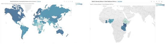 For example, when analyzing the Global Food Security visualization, Gemini could identify correlations between different regions’ security metrics and suggest targeted interventions based on successful policies in similar contexts. Similarly, for the adult literacy rates visualization, the model could provide insights into effective educational strategies by analyzing temporal patterns and regional variations. This human–AI collaborative approach would enhance the framework’s analytical capabilities while maintaining the interpretability and actionability of insights for policy-makers.
