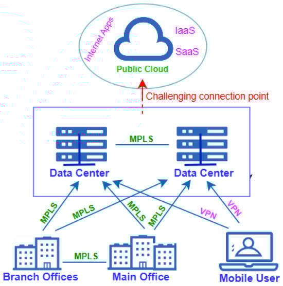 | Cloud and SDN-based interventions | Cloud Networking | Security breaches, Cost management | Multi-cloud strategies [92], hybrid cloud security models [38] | Software-defined cloud networking, SASE [4,69] |