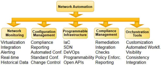 - Arzo, S.T.; Naiga, C.; Granelli, F.; Bassoli, R.; Devetsikiotis, M.; Fitzek, F.H. A theoretical discussion and survey of network automation for IoT: Challenges and opportunity. IEEE Internet Things J. 2021, 8, 12021–12045. [Google Scholar]
