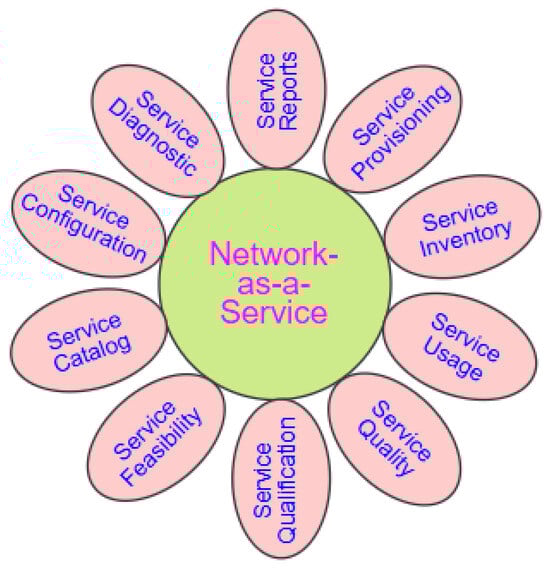 - Globa, L.; Sulima, S.; Romanov, O.; Skulysh, M. Dynamic Reconfiguration of Computing Resources to Support NaaS Technology. In Proceedings of the International Conference on Applied Innovation in IT; Anhalt University of Applied Sciences: Köthen, Germany, 2023; Volume 11, pp. 17–22. [Google Scholar]