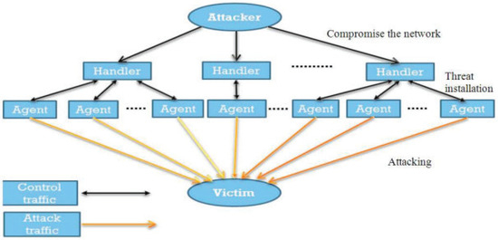 - Bhaya, W.; Manaa, M.E. Review clustering mechanisms of distributed denial of service attacks. J. Comput. Sci. 2014, 10, 2037. [Google Scholar] [CrossRef]
