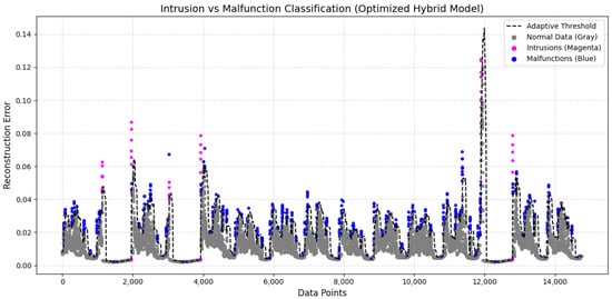 Intrusion vs. malfunction classification (optimized hybrid model).