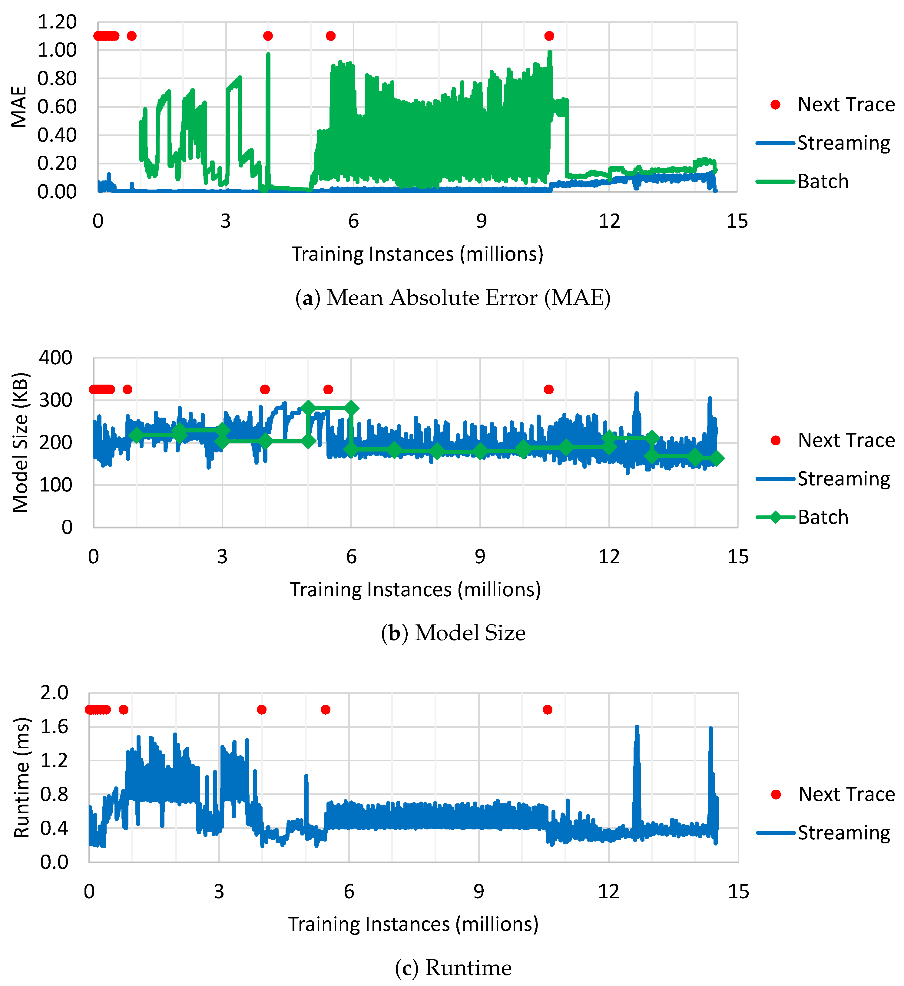 Following the p-value, the Chi-squared test also gave a high score for the Request Offset and File Fully Read Frequency. These features have higher scores in Traces 14–17, which are traces with a high number of sequential read requests. In contrast with the p-value metric, the File Size received a lower score from the Chi-squared test. It is interesting to observe that file access patterns received high scores from both metrics. For instance, the File Length Pattern and the File Spatial Pattern received a positive p-value score, while their weight received a high Chi-squared score. The access patterns related to files and directories received the highest scores, while the file format patterns received, in general, lower scores. This indicates that the file access patterns are correlated to the target variables and can help the prediction models. The key results from the Gini Importance are similar to the Chi-squared results and are not elaborated due to space constraints.