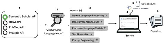 Several APIs limit the number of requests that can be made in a given time, especially when processing large volumes of data. Semantic Scholar API returns up to 1000 papers per request, if more paper matches are found, the API returns a continuation token to continue fetching up to a maximum of 10,000,000 papers [44]. DOAJ API imposes a rate limit of two requests per second but allows bursts of up to five requests to be queued to maintain that average and a page size limit of 100 articles per page [45]. PubMed API limits 3–10 requests per second with a maximum of 10,000 articles that can be fetched in a single request [46]. The proposed system restricts data retrieval to a maximum of 100 articles per query per API to ensure compliance with rate limits and maintain stable access.