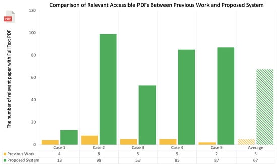 For evaluations of the proposal, we implemented the prototype environment, and selected five reference paper queries covering different topics. Then, we compared the number of available relevant references with full-text PDF access by the proposal with our previous system [22], and examined the impact of multi-threading on the response time [23]. The proposal increases the number of relevant references with full-text PDF access by 64.38% on average, and reduces the response time by 59.78% on average.