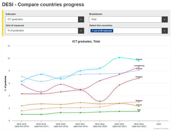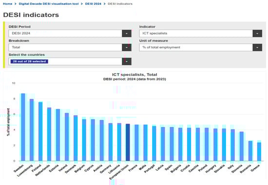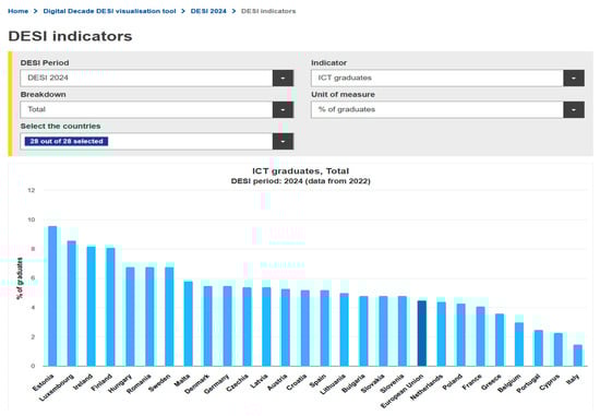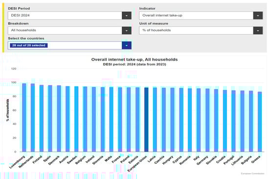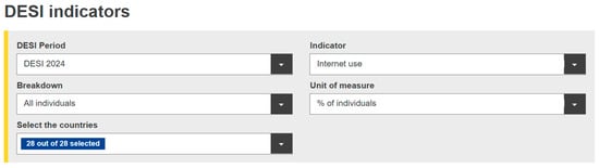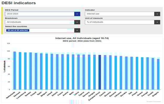 - Digital Decade DESI Visualization Tool. Available online: https://digital-decade-desi.digital-strategy.ec.europa.eu/ (accessed on 14 April 2025).