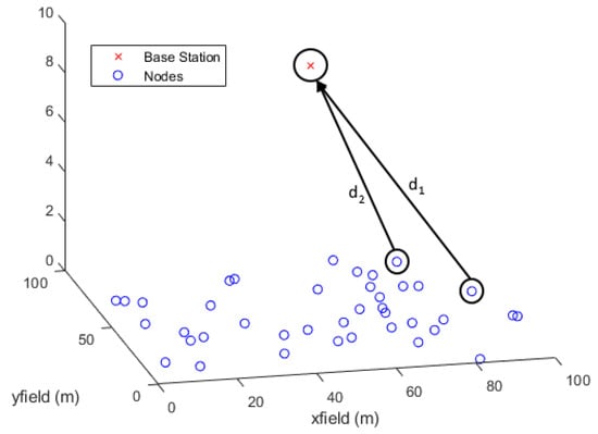 , can be calculated based on its distance from the receiver, as defined by Equation (
