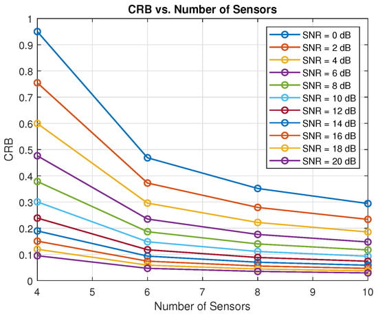 Furthermore, the number of sensors can significantly impact the system’s accuracy. To evaluate the theoretical limits of position estimation accuracy, we employ the Cramer–Rao Bound (CRB) [