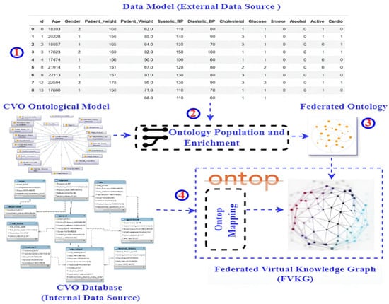 - Fareedi, A.A.; Ismail, M.; Ghazawneh, A.; Ahmed, S.; Bukhari, S.A.C. Empowering health data fusion: A federated virtual knowledge graph approach leveraging the Ontop platform. In Proceedings of the 16th Mediterranean Conference on Information Systems (MCIS 2024) and the 24th Conference of the Portuguese Association for Information Systems (CAPSI 2024), Porto, Portugal, 3–5 October 2024; pp. 1–17. [Google Scholar]