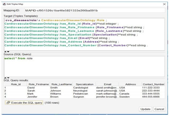 - Das, S.; Sundara, S.; Cyganiak, R. R2RML: RDB to RDF Mapping Language. 2012. Available online: https://www.w3.org/TR/r2rml/ (accessed on 8 May 2024).