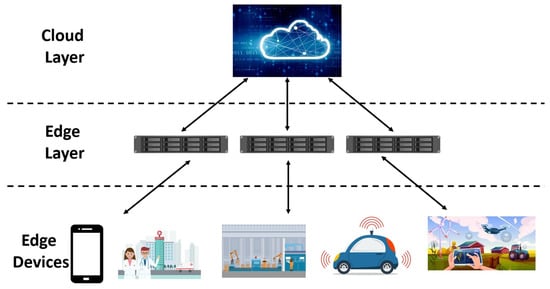 - Federated Learning (FL): FL enables the training of deep learning models across multiple participants or computing nodes while keeping data security and privacy intact. It supports the collaborative training of ML and DL models by leveraging local data on edge devices and sending only the updated model parameters to a central cloud server [48].