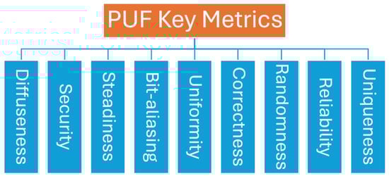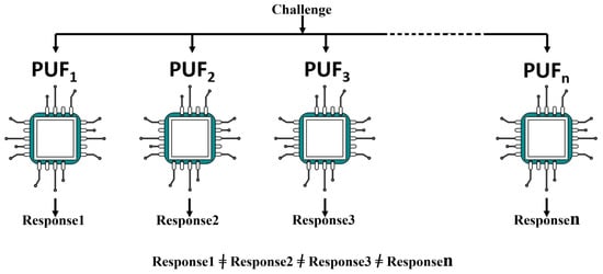 - Anandakumar, N.N.; Hashmi, M.S.; Chaudhary, M.A. Implementation of Efficient XOR Arbiter PUF on FPGA with Enhanced Uniqueness and Security. IEEE Access 2022, 10, 129832–129842. [Google Scholar] [CrossRef]