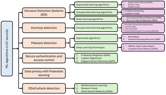 - Emerging trends: Quantum computing is an emerging technology that leverages quantum bits (qubits) instead of binary digits, enabling significantly faster computations than traditional computers. Quantum-Edge Cloud Computing (QECC) is an innovative approach that combines the computational power of quantum computing, the low-latency advantages of EC, and the scalability of cloud computing [68]. Another approach gaining traction is AI-powered EC, which deploys ML models for efficient, secure, and effective operations. Threat intelligence plays a crucial role in identifying, analyzing, and mitigating cybersecurity threats. Large datasets are analyzed on threat intelligence platforms powered by AI and ML to uncover patterns that can reveal cyber threats [69].