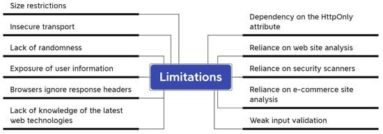 Cookies used in web applications have limitations when it comes to protecting against cross-site scripting (XSS) attacks. These limitations include vulnerabilities such as user information exposure, lack of randomness, insecure transport, and size restrictions. Several techniques have been proposed to detect and prevent XSS attacks, but these have limitations, as seen in Figure 1.