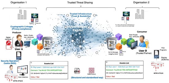 - Ali, H.; Ahmad, J.; Jaroucheh, Z.; Papadopoulos, P.; Pitropakis, N.; Lo, O.; Abramson, W.; Buchanan, W.J. Trusted Threat Intelligence Sharing in Practice and Performance Benchmarking through the Hyperledger Fabric Platform. Entropy 2022, 24, 1379. [Google Scholar] [CrossRef]