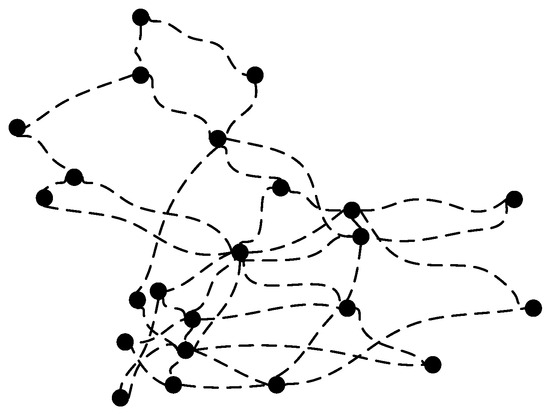where represents the starting node of the data flow, represents the destination node of the data flow, represents the start time of data transmission, represents the end time of the data flow, and represents the traffic demand. is the set of links (), denotes the path from node to , and the average delay/throughput is calculated over all node pairs . The calculation equations for average end-to-end time and average throughput are shown in Equations (8) and (9). Where and denote source and destination node indices (), and represents the link index within path . The terms and denote the delay and throughput of the link , respectively.