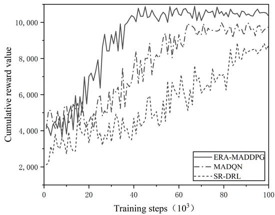 - Convergence comparison of the ERA-MADDPG algorithm, MADQN algorithm, and SR-DRL algorithm