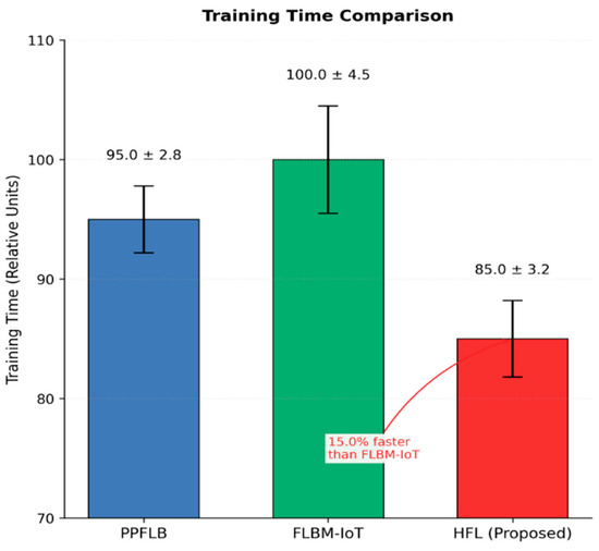 As compared with the baseline models, the HFL framework saved 15% of the total training time, as indicated in Figure 3. Another algorithm that was employed to enhance the local training stability while at the same time preventing deviations from the global model was the FedProx algorithm, which enhanced the convergence of the models, particularly when working with heterogeneous data.