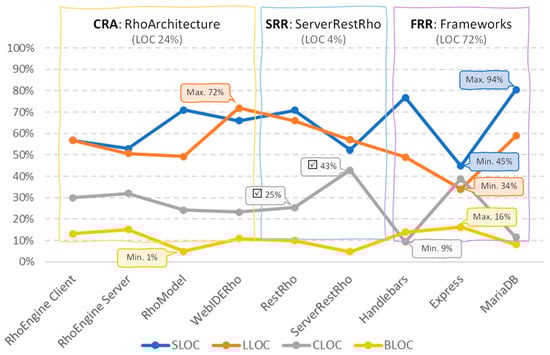 Thus, the objective of the present article is to detail the evaluation performed on RhoArchitecture through a specific case study we called RestRho, a domain-specific solution that facilitates the specification, implementation, and deployment of RESTful (Representational State Transfer) APIs on a NodeJS [19,20]. We performed the evaluation from two main points of view. Firstly, a software metrics-based validation of the implementation provided an objective assessment of the software quality. This included evaluating complexity, difficulty, effort, estimated errors, and maintainability [21]. Secondly, an empirical validation evaluated the effectiveness, efficiency, and satisfaction of the two JSON-DSLs, which involved considering how well the DSL captures the essential concepts and operations of the problem domain, how efficiently users can complete tasks, and the impact on domain experts’ usability and satisfaction within the development process [22,23,24,25,26].