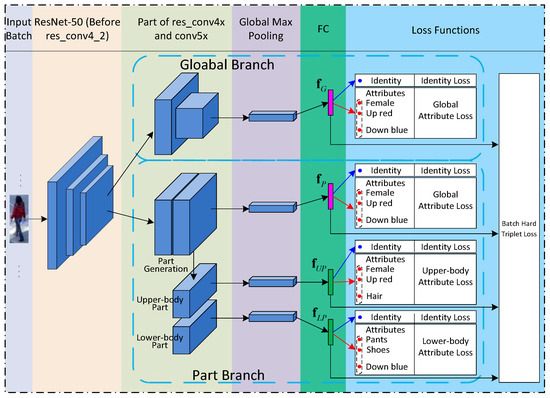 - Matsukawa, T.; Suzuki, E. Person re-identification using cnn features learned from combination of attributes. In Proceedings of the 2016 23rd International Conference on Pattern Recognition (ICPR), Cancún, Mexico, 4–8 December 2016; IEEE: Cancun, Mexico, 2016; pp. 2428–2433. [Google Scholar]