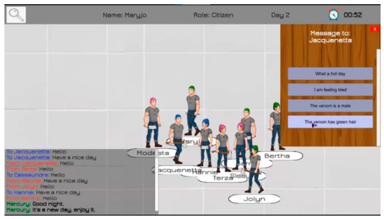 The game chosen for the information-sharing measurement is an interaction-based multiplayer game. The game is based on two well-known games: “Werewolf” and “Guess Who?”. In the Werewolf game, players, known as villagers, guess who the secret werewolves among them are, before the werewolves kill them. In the “Guess Who?” game, players have to guess the identity of the other players by asking yes/no questions. Based on the integration of these two games, we designed the Mercury interaction-based game, as follows.