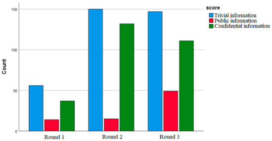 To test whether types of information are shared differently by security-sensitive personnel in different rounds, a Cramer’s Phi-Coefficient test was calculated to analyze the relationship between the type of participant (non-intelligence = 0 and intelligence = 1) and type of information shared (trivial = 0, public = 1, and confidential = 2) in each round separately.
