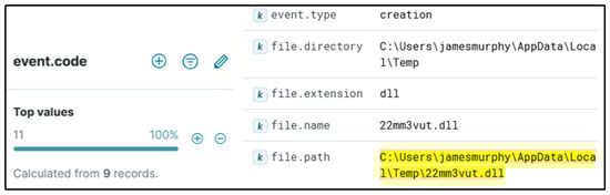 The authors found all the logs have Event code ‘11’, the DLLs executed from ‘AppData\Local\Temp’ folder. Expanding the log, displays the file path and file directory as displayed in Figure 4.
