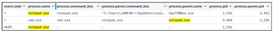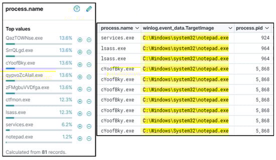 To find contextual information like process names and IDs responsible for these hits, the authors added Event Code, File Path, Process Name, and Process ID to the SIEM dashboard as illustrated in Figure 5.