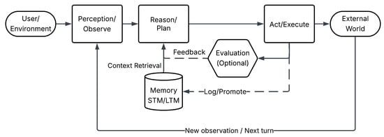 - Perception and world modeling—Ingests and structures external inputs (e.g., text, sensors, APIs) into internal representations [41,95].