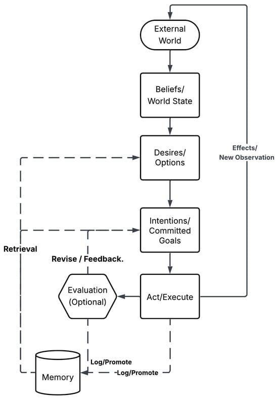 - Memory (Short-Term, Long-Term, Episodic)—Stores short- and long-term knowledge; retrieval/promotion rules connect past to present reasoning [39,95].
