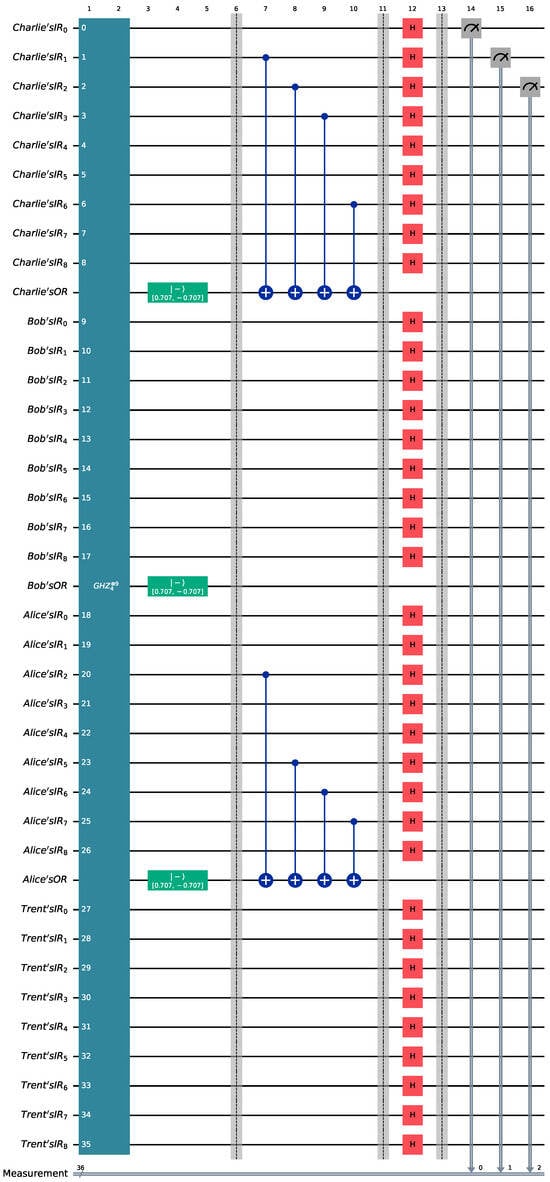 - Modular and Streamlined Implementation: The protocol employs identical quantum circuits for all the participants, ensuring modularity and ease of implementation. These circuits rely solely on standard quantum gates, such as Hadamard and CNOT gates, making them compatible with contemporary quantum computing platforms.
