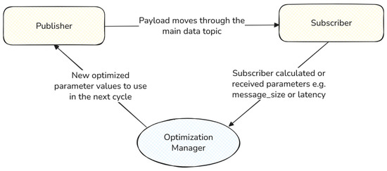 The dynamic optimization framework operates by adjusting controllable parameters exposed by the architecture’s layered design. In this work, we focus specifically on parameters relevant to real-time video streaming, where minimizing transmission latency and maintaining acceptable video quality are critical. The chosen targets reflect the characteristics and constraints of video payloads transmitted over pub/sub platforms. However, it is essential to note that the architecture is not limited to these parameters. Other use cases—such as sensor data aggregation, event-driven control systems, or large-scale telemetry—may define different optimization targets appropriate to their performance priorities.