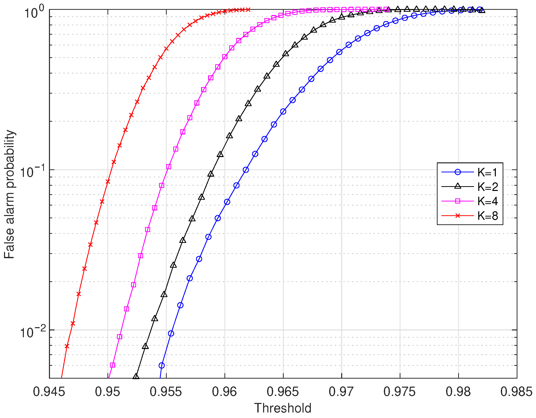 K, due to its higher false-alarm probability. Notably, for W-D-CSS, increasing