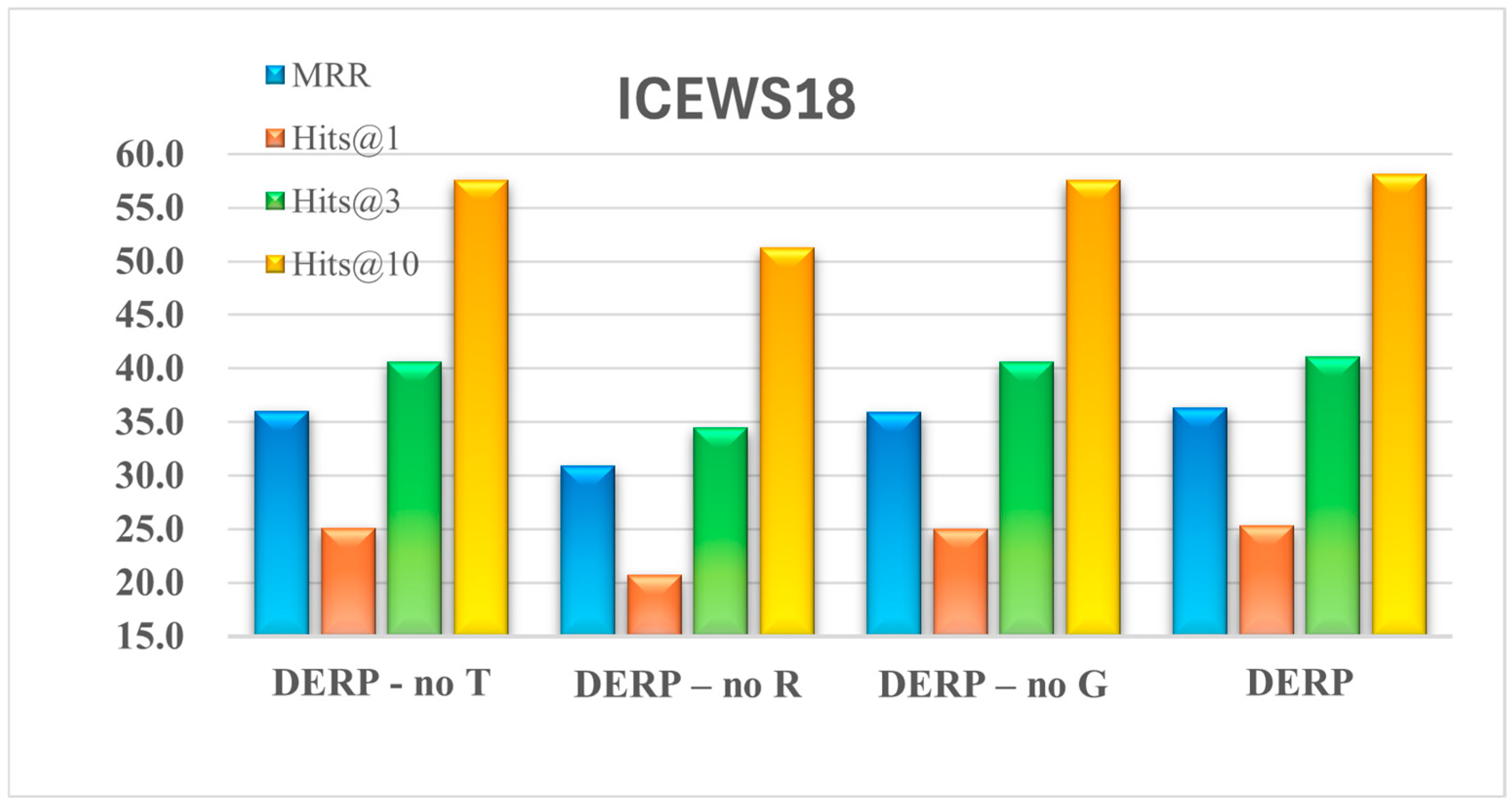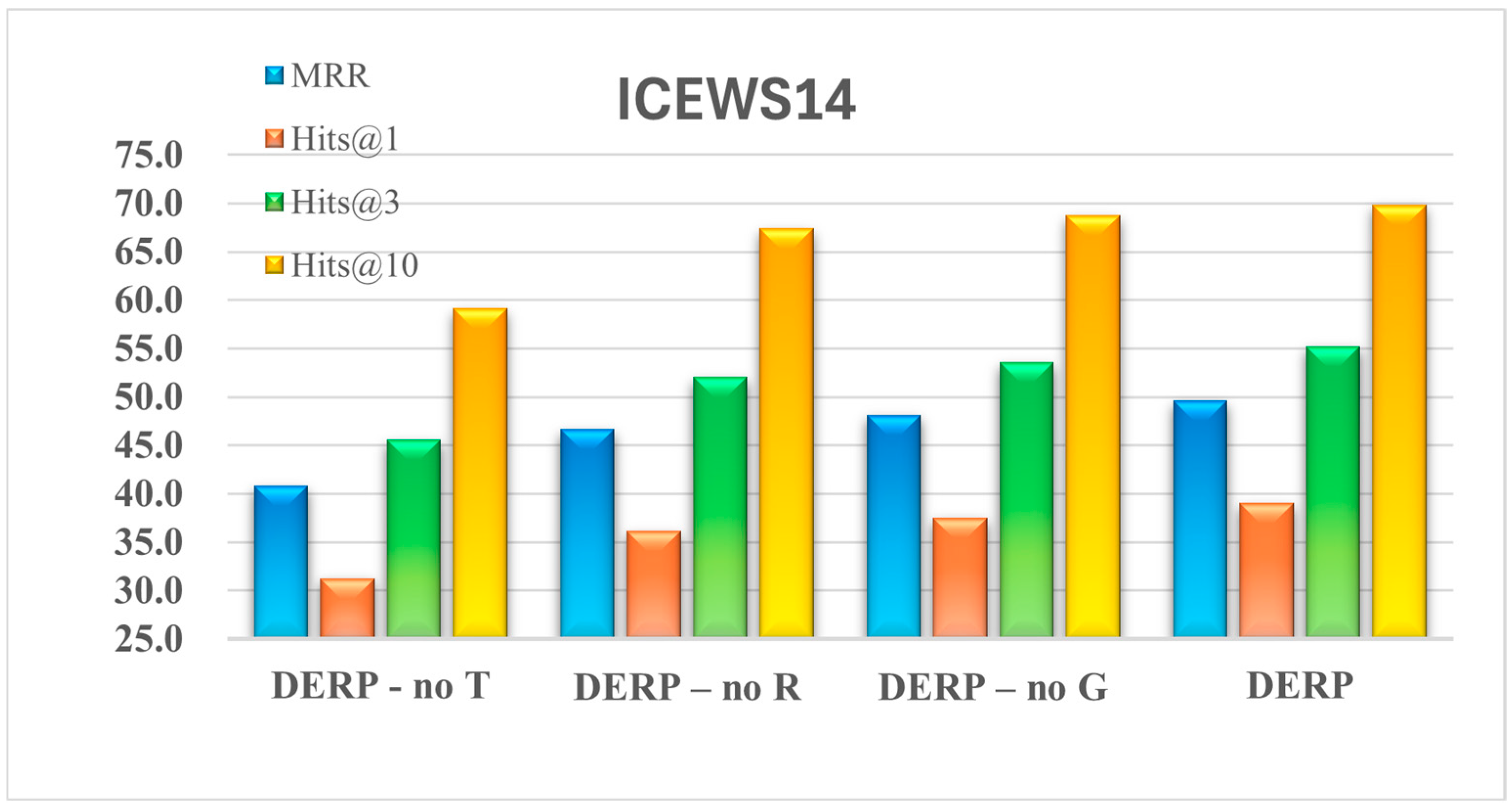 - Through systematic experiments on four public datasets, this study demonstrates the DERP model’s capability to capture critical information from TKGs. The results indicate a significant advantage of the model in complex temporal reasoning tasks compared with state-of-the-art approaches.