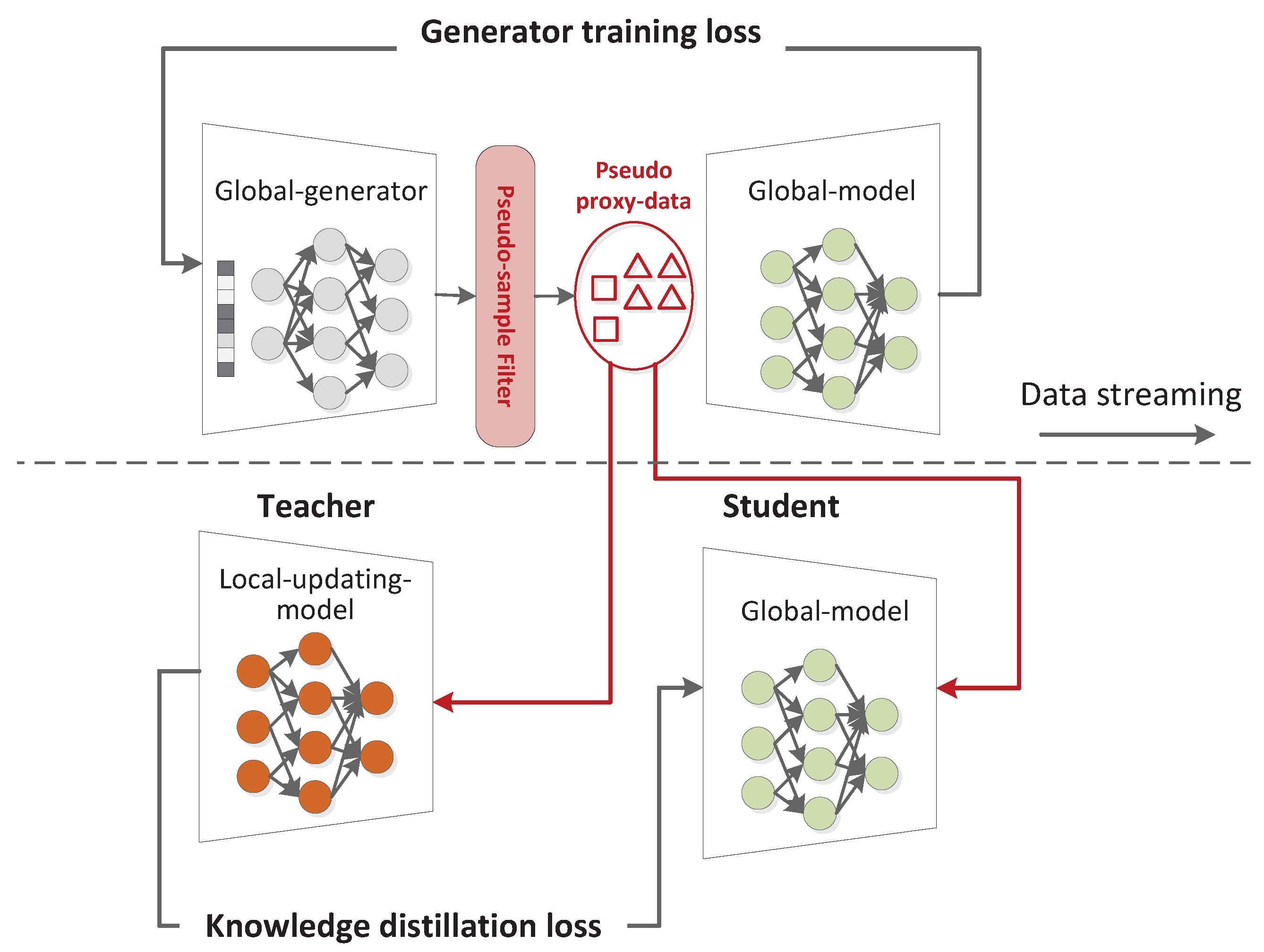 Chicago/Turabian StyleSun, Wenhao, Xiaoxuan Guo, Wenjun Liu, and Fang Sun. 2026. "Heterogeneous Federated Learning via Knowledge Transfer Guided by Global Pseudo Proxy Data" Future Internet 18, no. 1: 36. https://doi.org/10.3390/fi18010036