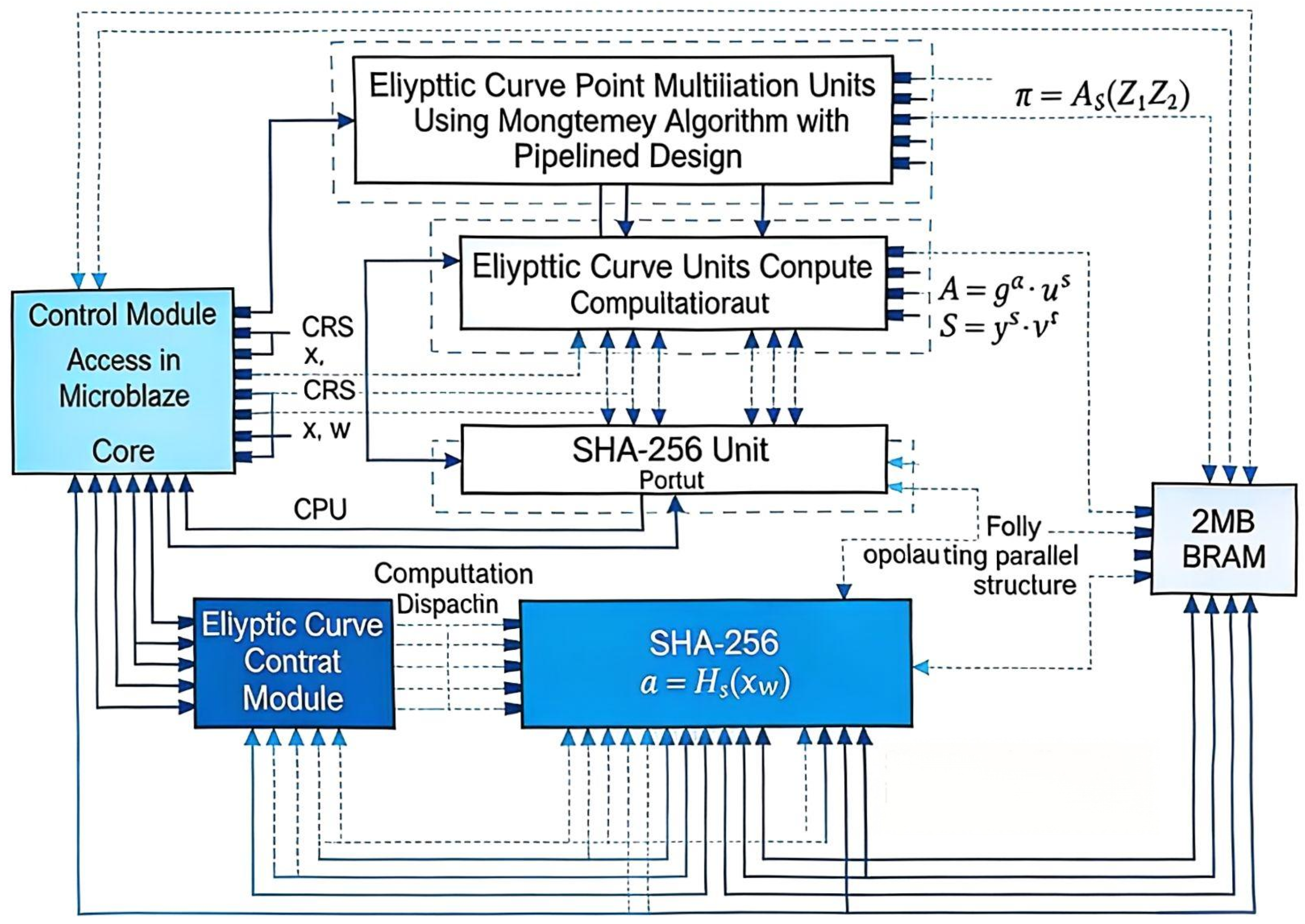 - Parallel processing of ZKP proof generation (FPGA multi-core architecture) and PRE re-encryption;