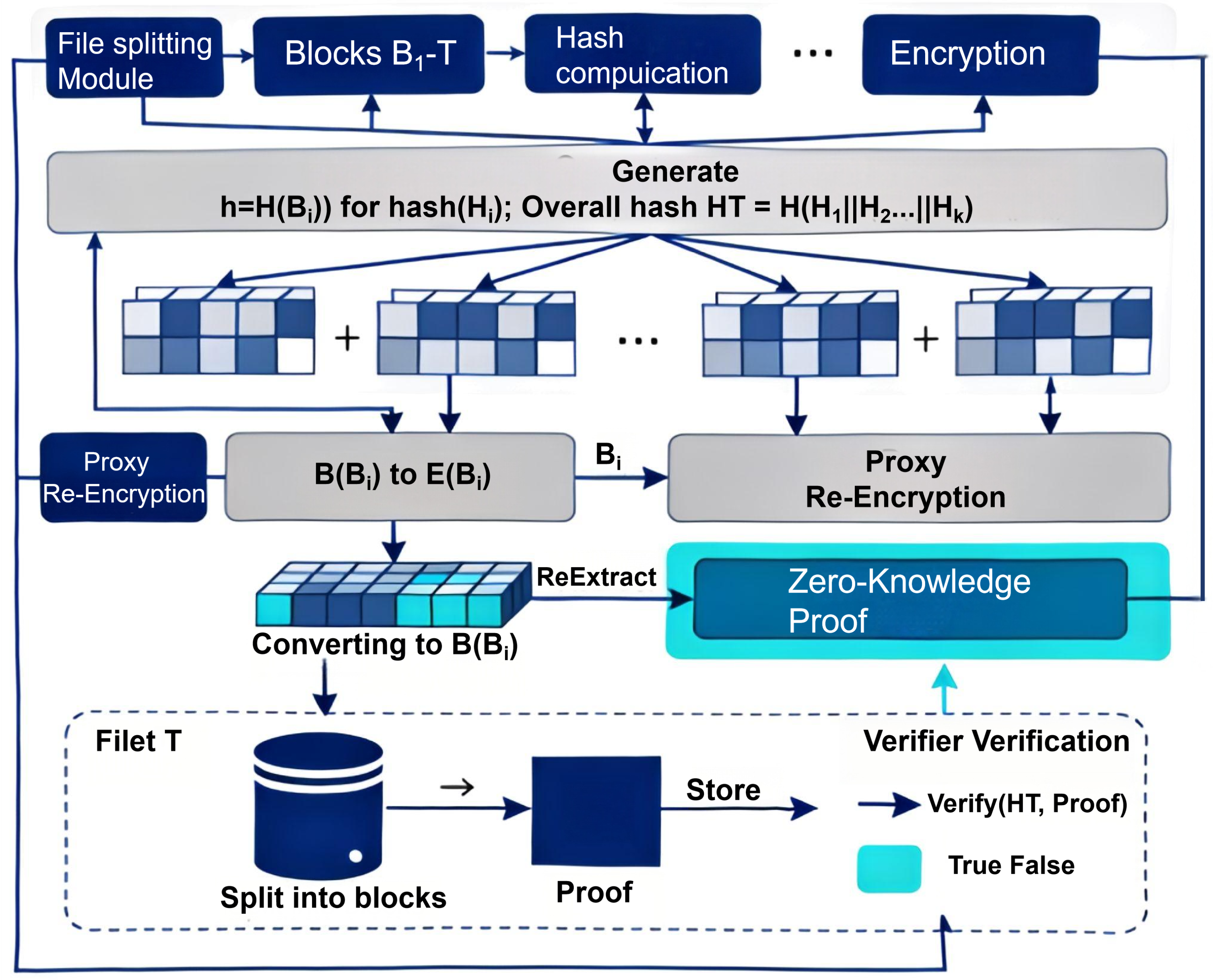 - PRE: PRE technology is responsible for implementing a secure and flexible data access mechanism. It allows data owners to re-encrypt encrypted academic records through a trusted proxy and grant authorization to designated users without directly sharing keys.