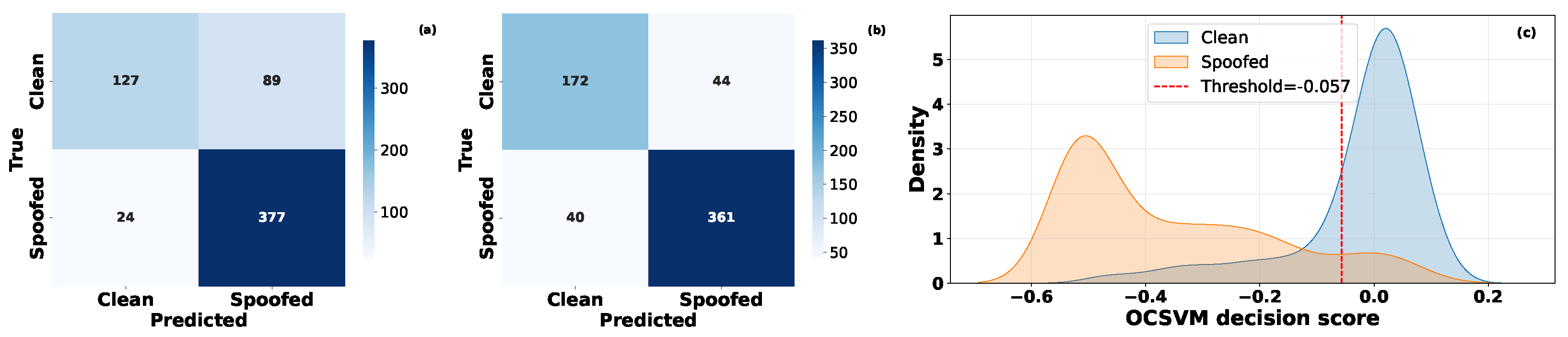 - We propose an unsupervised learning-based spoofing attack detection model based on One-Class SVM (OCSVM), which can detect both spoofing attacks with high accuracy.