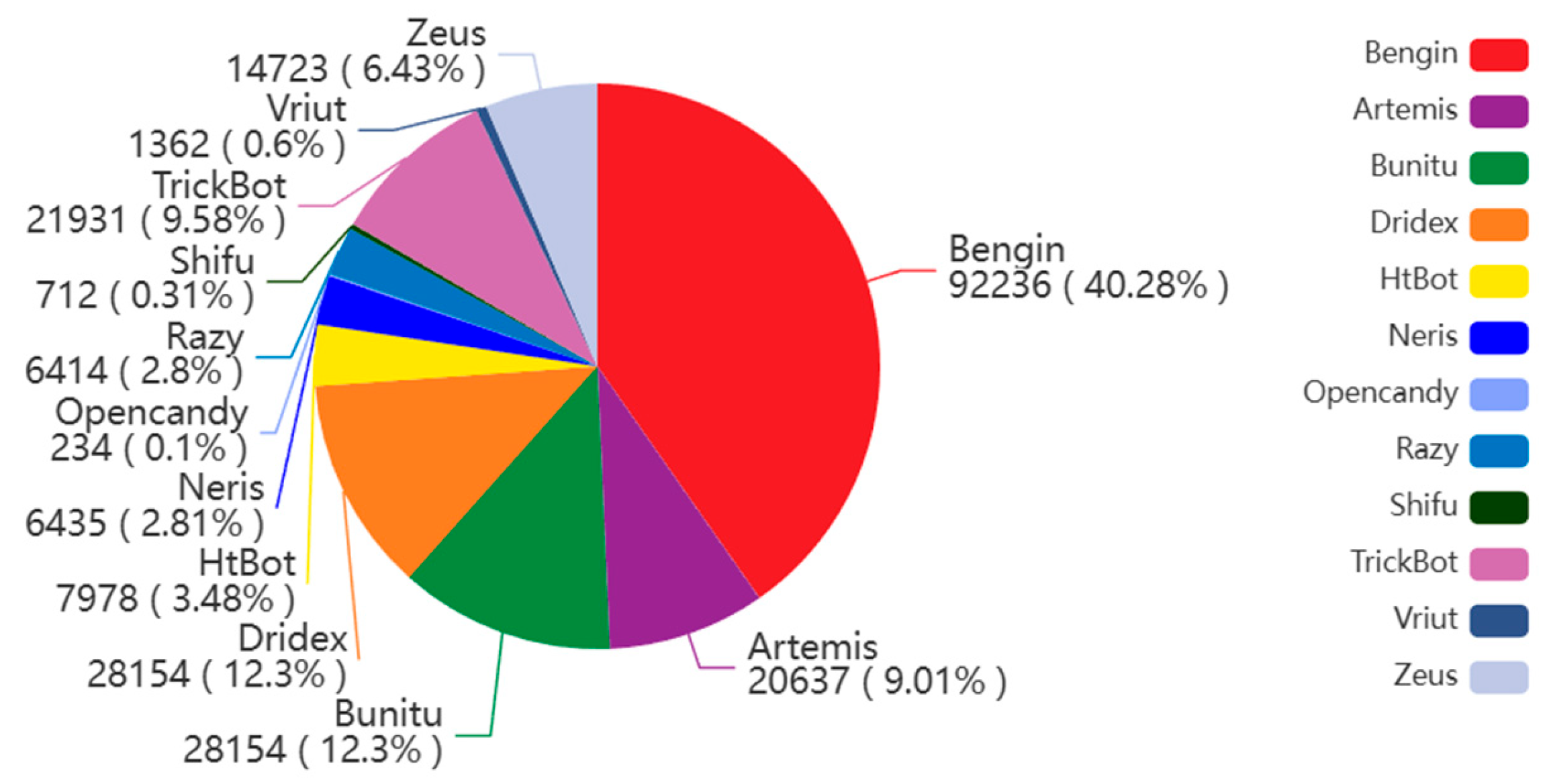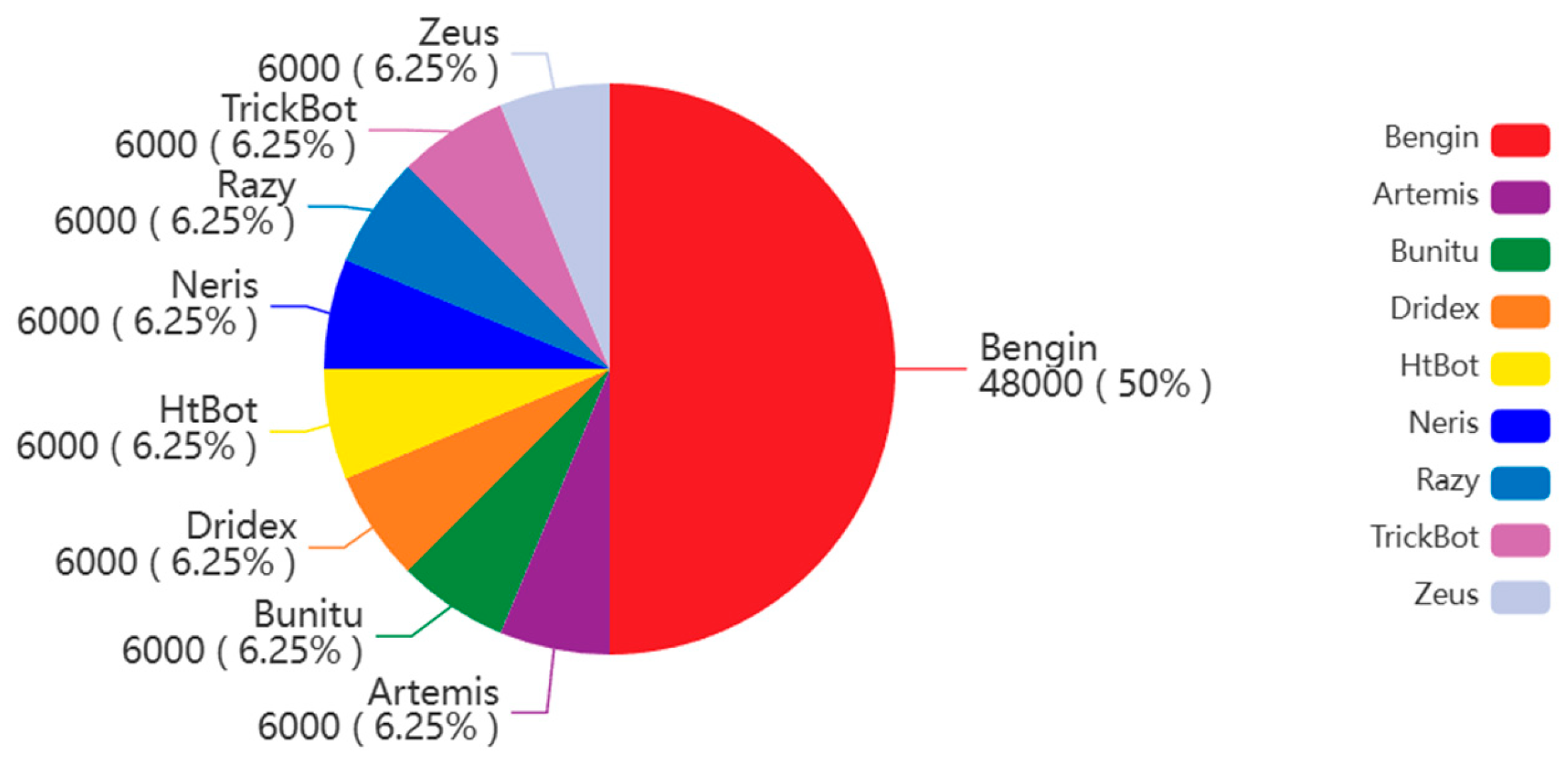 39] (2017) introduced a 2D-CNN malicious traffic classification method. The method maps the raw traffic to grayscale images and converts them to IDX format as model input. Validation on the USTC-TF2016 dataset demonstrated an accuracy of 99.41%. The advantage of this method is that it can directly process the raw data, thereby reducing the reliance on manual feature engineering. Wu et al. [