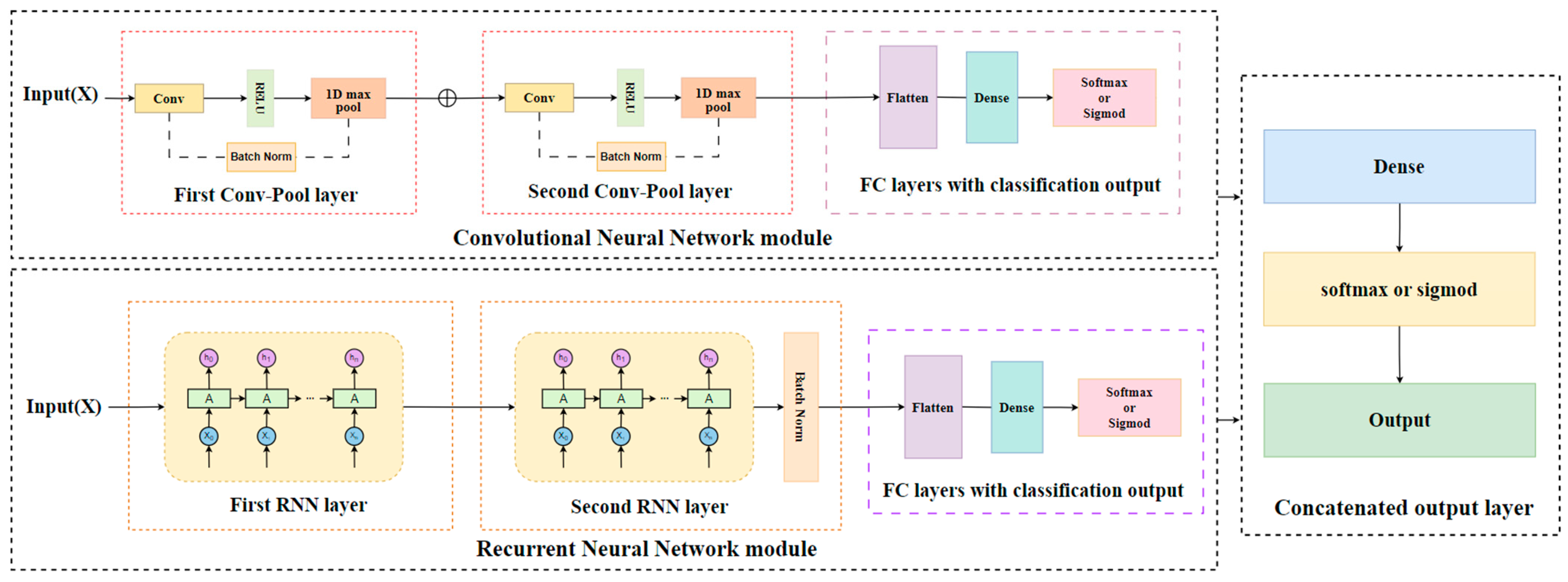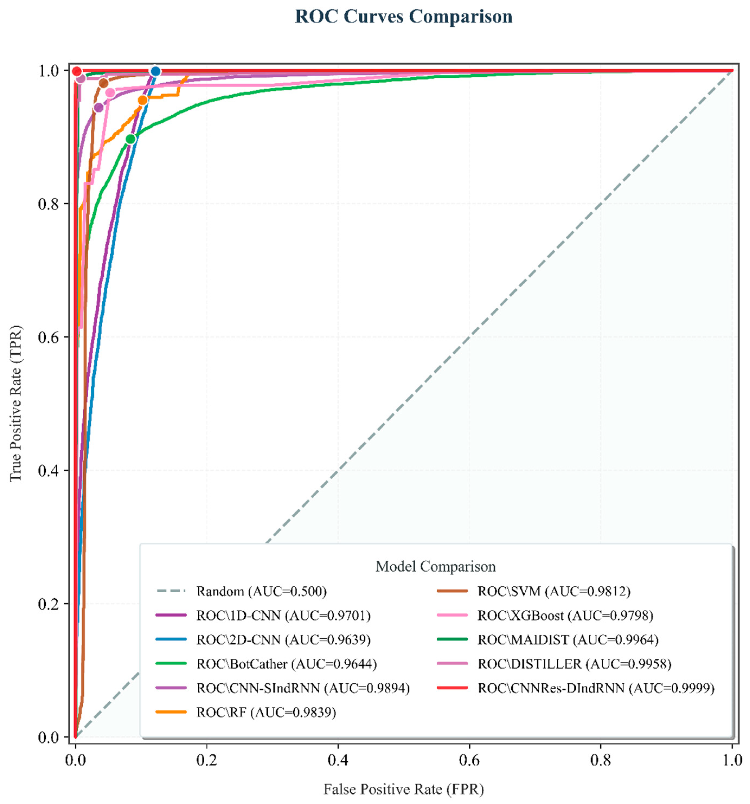 43] (2022) designed a lightweight CNN-SIndRNN architecture for malicious TLS detection. While effectively capturing local patterns and long-range dependencies via 1D-CNN and enhanced SIndRNN, the method exhibits degraded performance on low-sample malware families (e.g., WannaCry), necessitating improved generalization. Bader et al. [