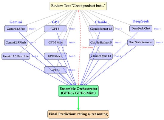 Absence of Formal Agent Model: This work focuses on meta-model aggregation for sentiment analysis, positioning itself within ensemble learning and LLM evaluation literature rather than multi-agent systems paradigms. To clarify terminology: our use of “orchestration” in the title refers specifically to meta-model aggregation—the process by which a reasoning-capable LLM combines predictions from multiple independent models. This differs from multi-agent coordination in which autonomous agents negotiate, communicate, and collaborate. The base models function as independent zero-shot inference systems accessed via APIs, processing inputs and generating predictions without maintaining state or learning from experience. For completeness, we note that our system does not implement formal agent properties such as: (1) belief-desire-intention (BDI) models or other formal agent architectures that maintain internal mental states, (2) autonomous learning loops that enable adaptation without human intervention, (3) environment interaction cycles where agents perceive, reason, and act dynamically, or (4) dynamic goal adjustment mechanisms. This positioning clarifies that our contribution lies in the empirical evaluation of meta-model aggregation effectiveness rather than agent architecture innovation.