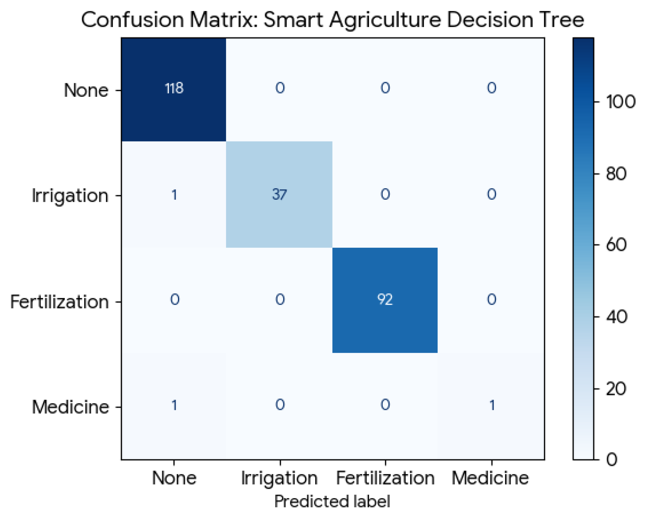 - The predicted class label(s) such as “irrigation”, “fertilization”, “plant medicine”, or a mix of them.