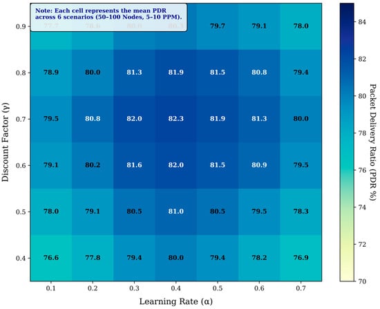 One of the fundamental aspects of Reinforcement Learning is understanding the algorithm’s hyperparameters and the exploitation-exploration trade-off. However, the discount factor and the learning rate in Equation (1) are essential in optimizing the learning process. The learning rate controls the influence of new information on existing knowledge. On the other hand, represents the discount factor (0 ≤ ≤ 1). It determines how much future rewards are valued [26].
