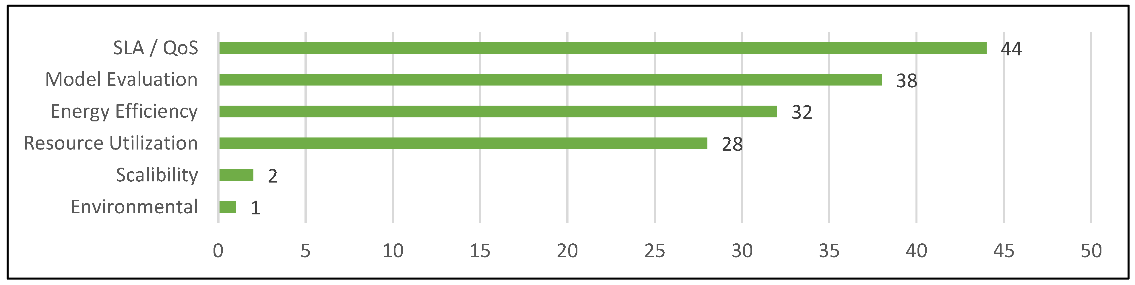 | 58 | [35] | RQ2, RQ3 | Authors propose a model for overload host detection using linear and logistic regression to reduce energy consumption, SLAV, and VM migrations through VM consolidation, employing various VM selection algorithms for testing. | Service level agreement, energy consumption, and the number of migrations. |