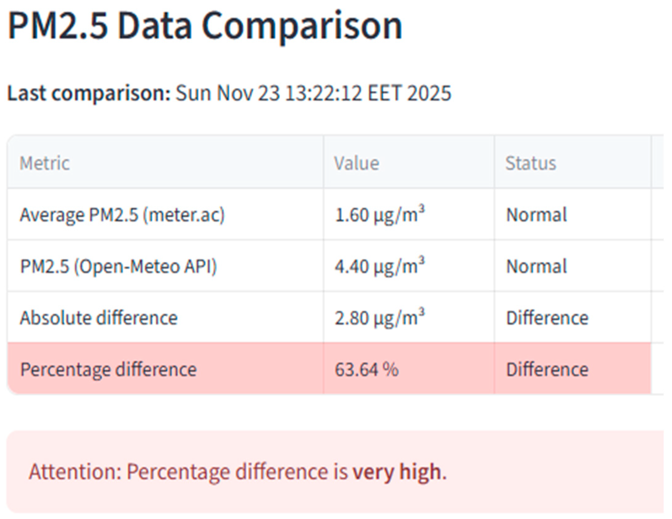 Figure 7. Example of PM2.5 measurement discrepancy.
