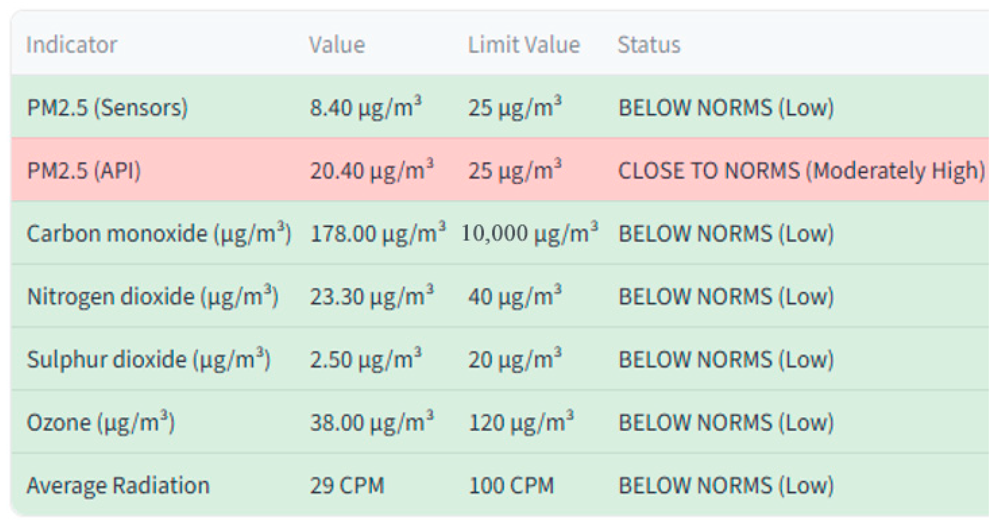 Figure 6. Sample from a general analysis of the air quality.