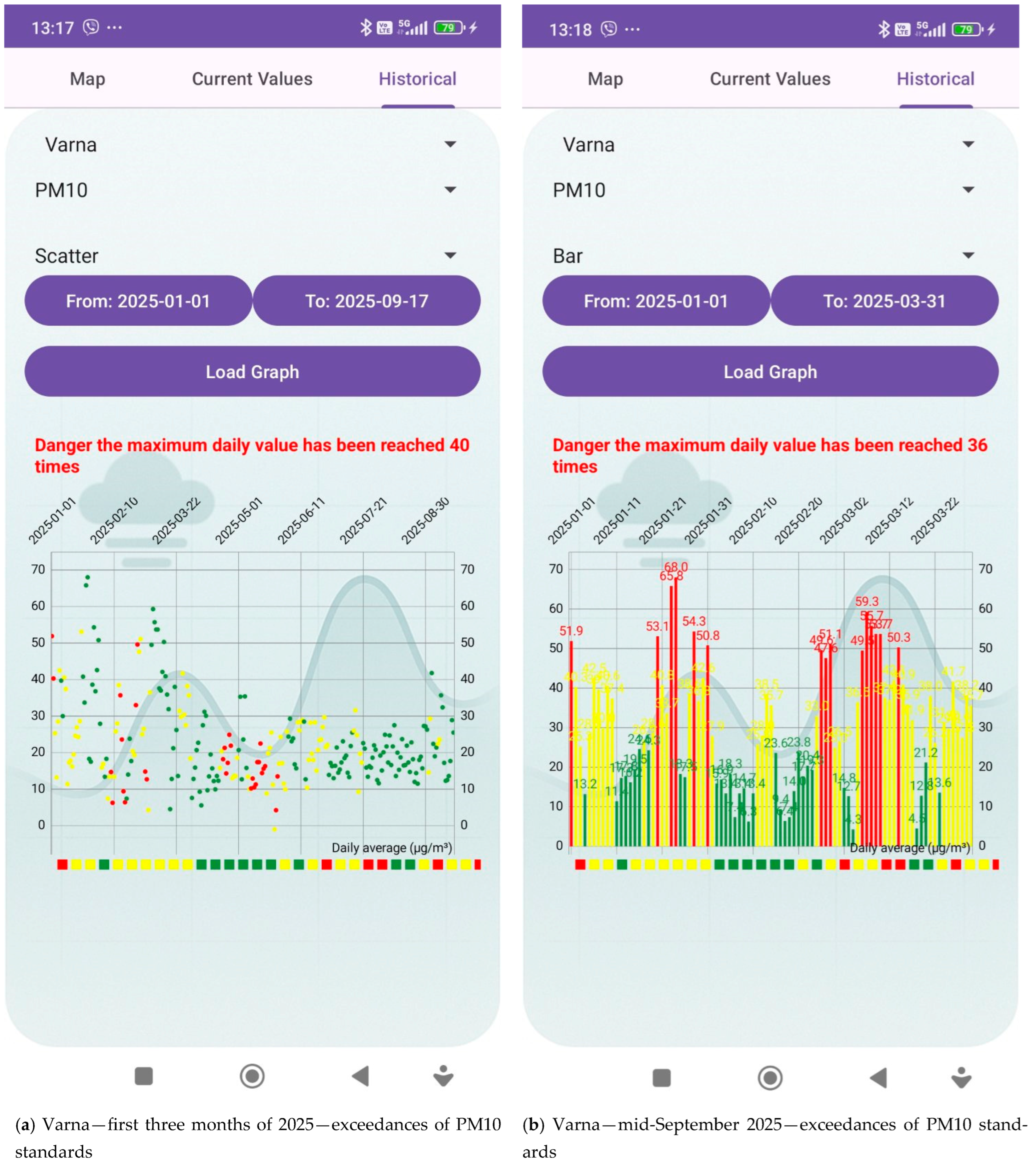 • Establishing a specific “profile” of the Plovdiv area—urban air pollution has a complex structure, including natural background, regional background (formed by sources located outside the city but affecting the air quality in the city), urban background (concentrations of various pollutants caused by industrial facilities in the city itself), traffic, and other local sources. Establishing the specific profile of the city will help find more effective solutions to improve air quality.